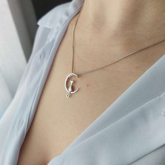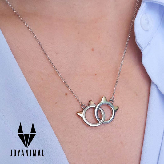 Collar con colgante de dos gatos entrelazados de plata de ley