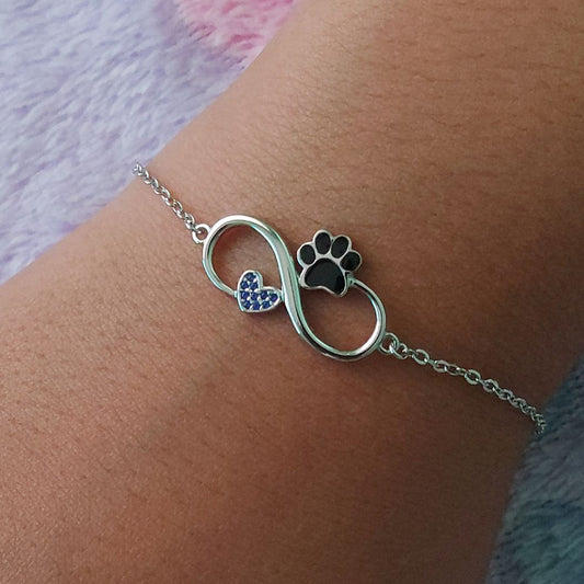 Pulsera de amor infinito a tu perro o gato, con corazón y huella