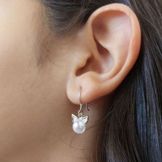 Pendientes de plata con perla y orejas de gato.