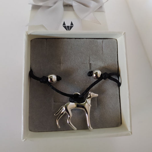 Pulsera de hilo ajustable con galgo de plata