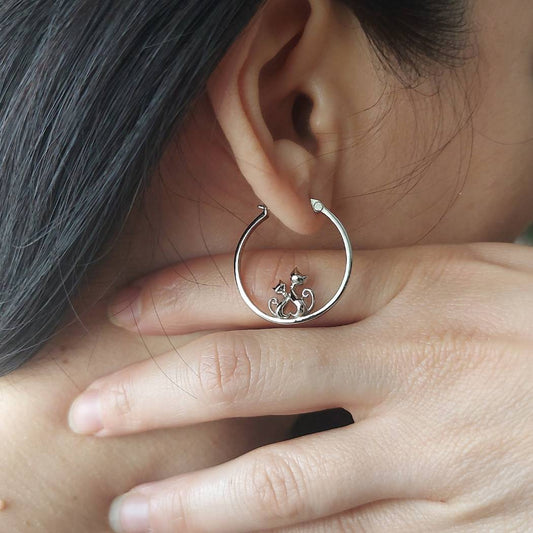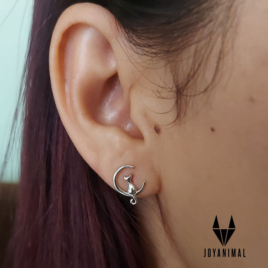 Pendientes plata de ley Luna y Gato 😻 Gatos en la luna
