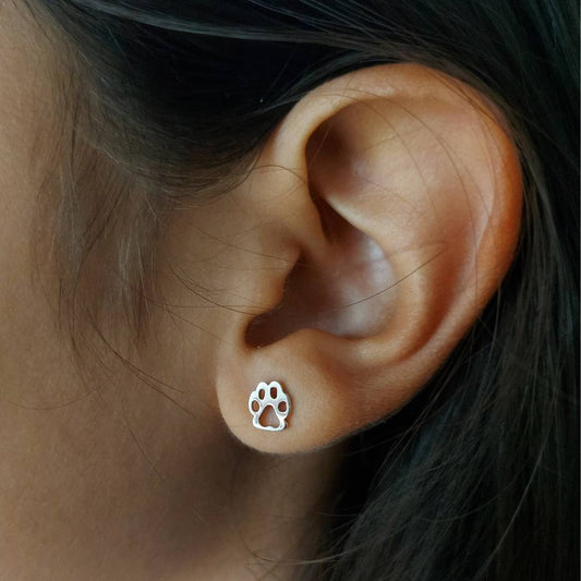 Pendientes huella de perro o gato y corazón en plata de ley 925