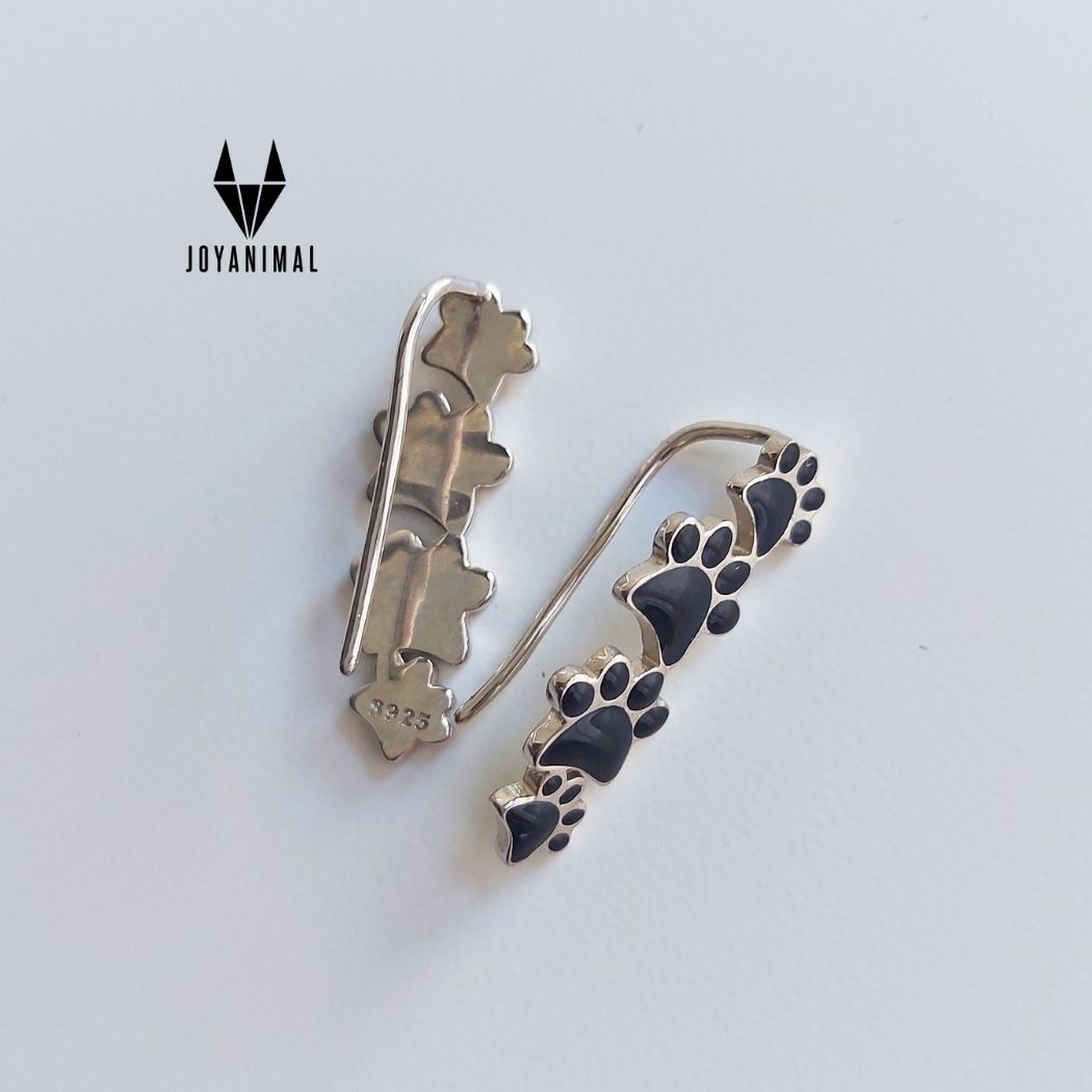 Pendientes colgantes de plata de ley 925 con cuatro huellas negras, diseñados para quienes sienten un vínculo especial con los animales.